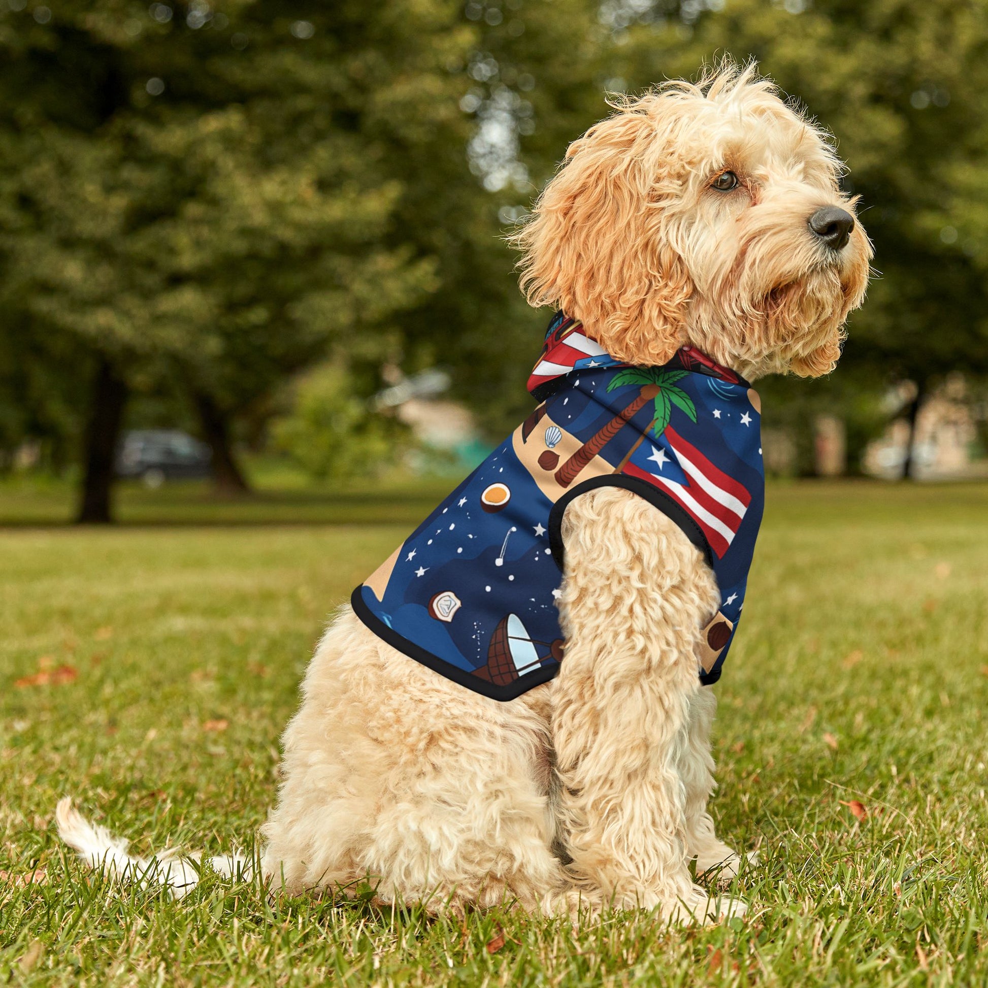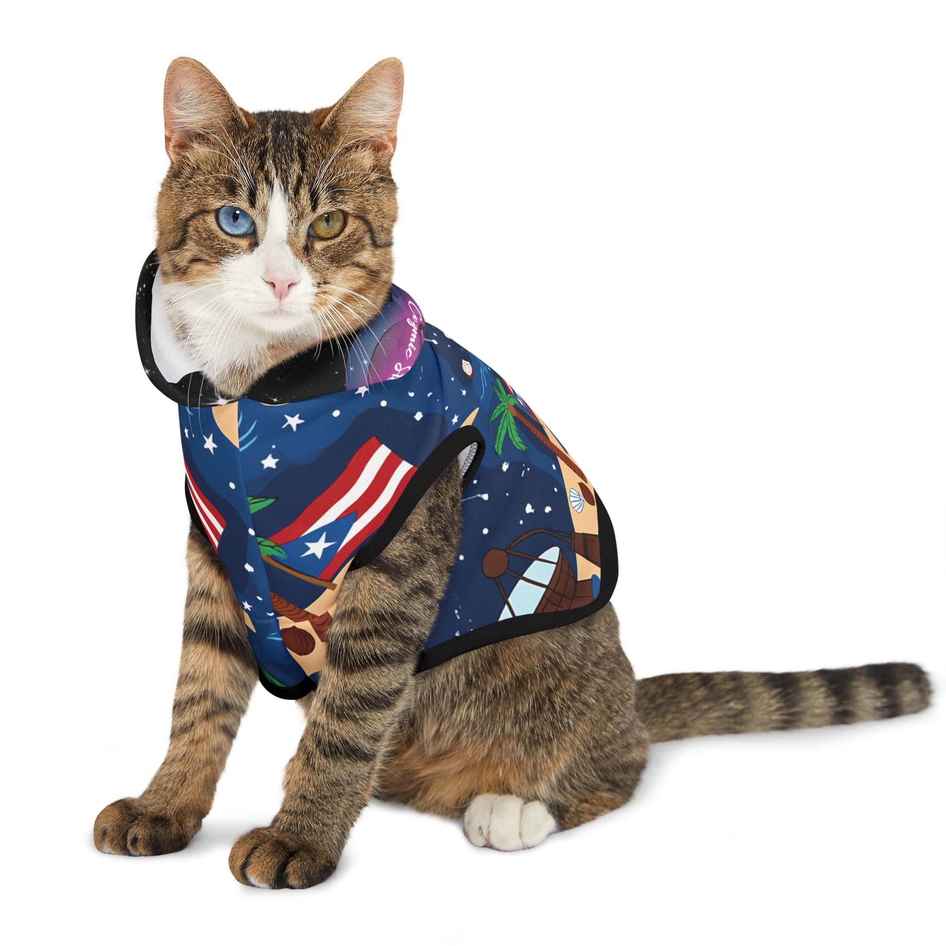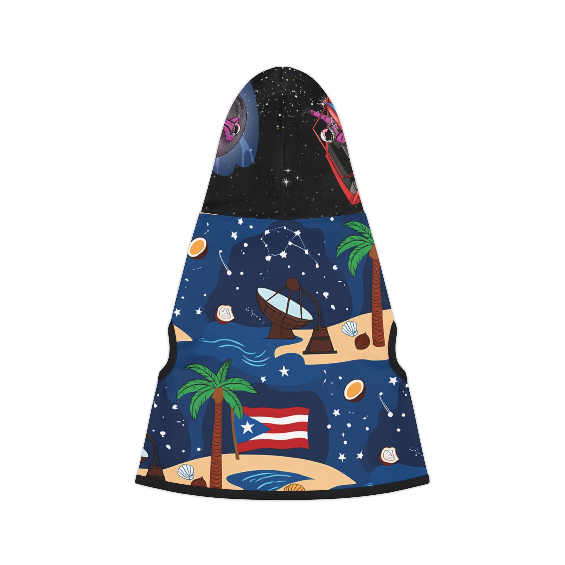 Cozmic Dog hoodie representing Cozmic's love of Puerto Rico and the brand, keeping your dog stylish and warm. Perfect for pet owners who want to pamper their furry friends. Great for holidays, celebrations, and everyday wear.